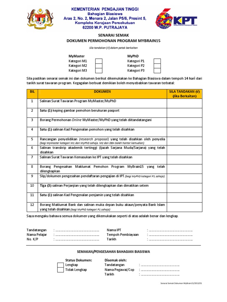 borang pengesahan maklumat pemohon program mybrain15 - MOAM.INFO